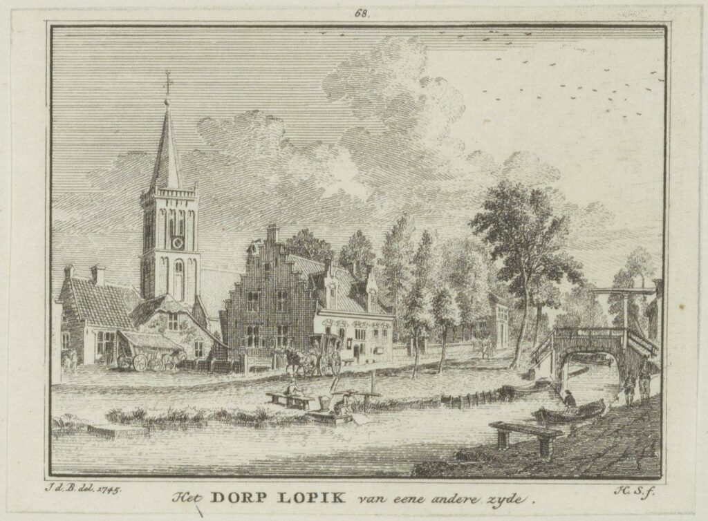 Het Dorp Lopik van eene andere zijde, Gravure van H. Spilman naar een voorbeeld van een gewassen tekening van J. de Beijer uit 1745.